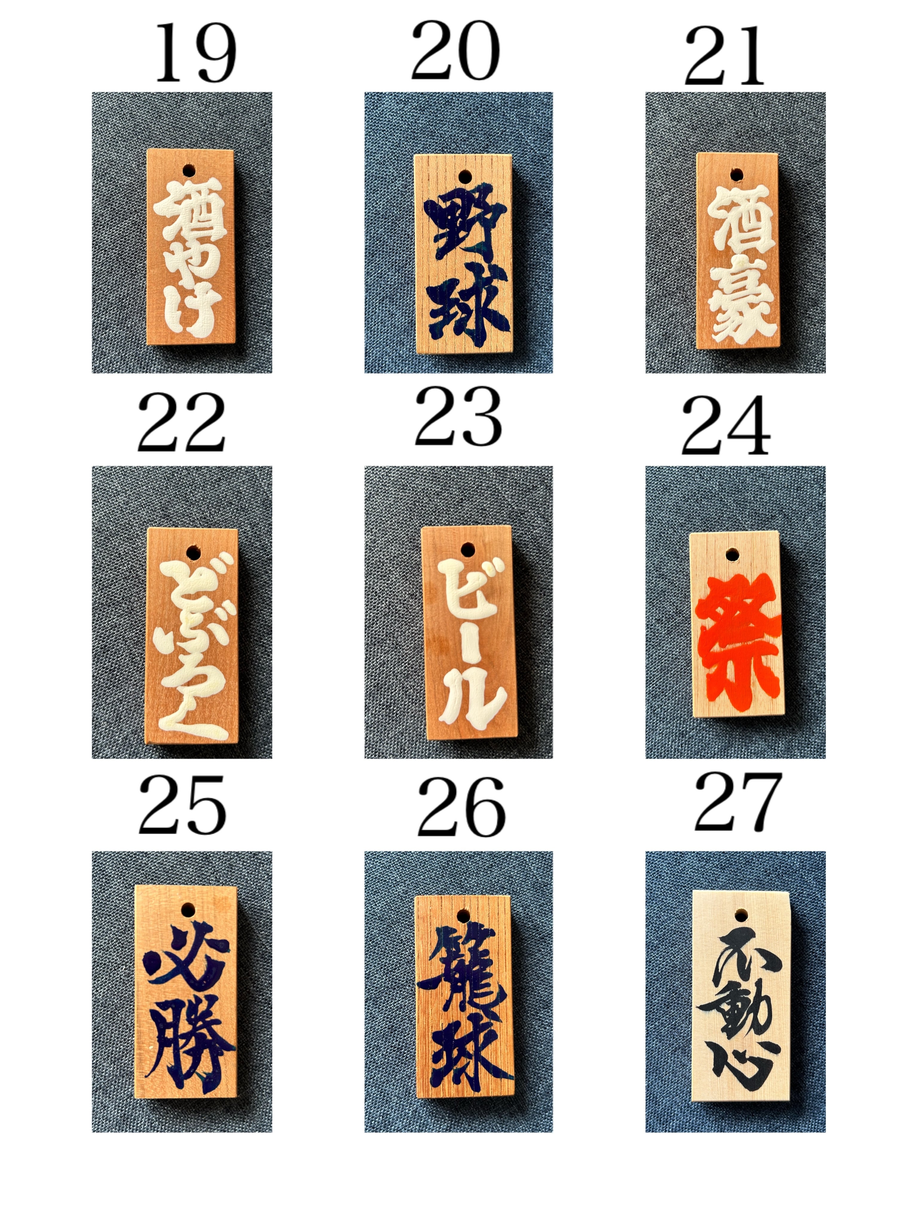 ※黒檀(濃い茶色~黒の木札)・パープルハート(紫)は仕入れ状況によって受注できない可能性がございます。